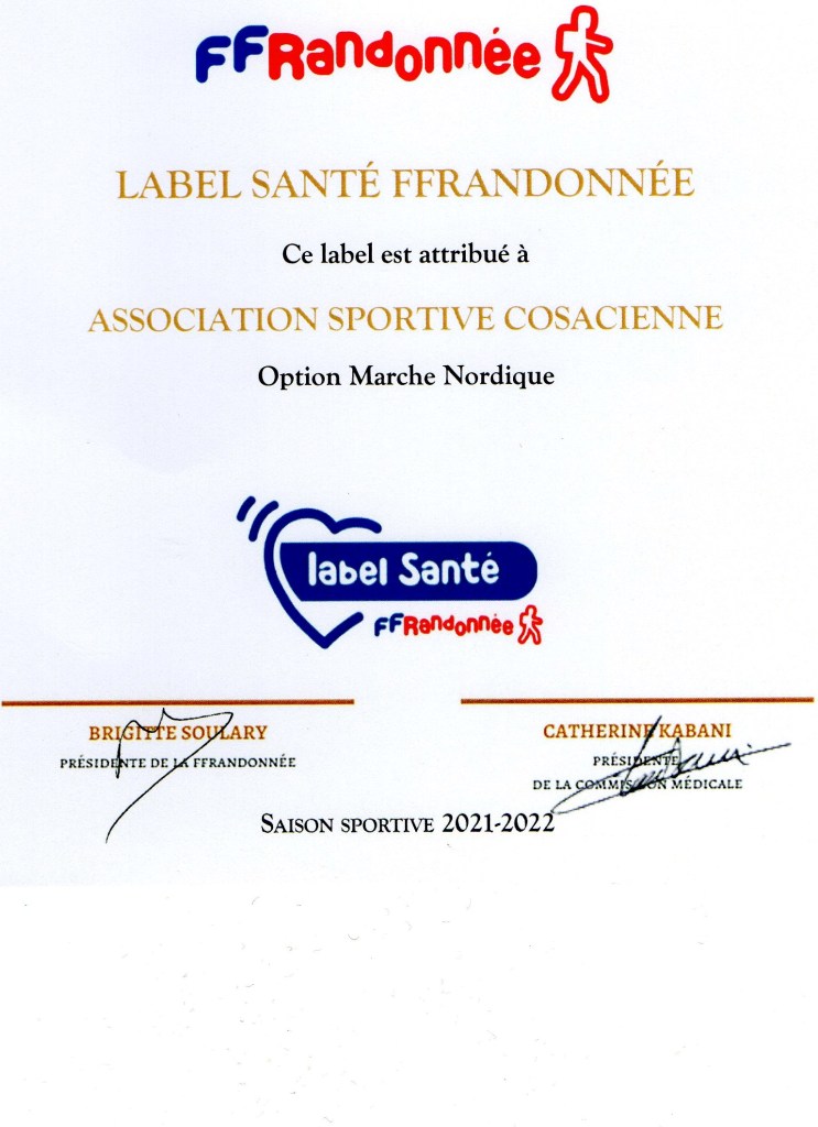 L’As Cosacienne a obtenu le label Marche Nordique Santé de la commission médicale de la FFRandonnée. 4 animateurs ont suivi la formation et vous proposent des séances sur terrain facile avec très peu de dénivelé.